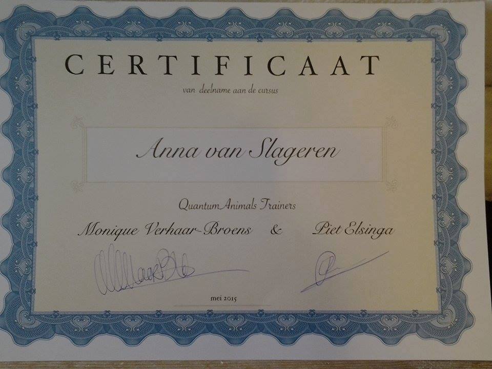 Op zaterdag 30 mei heb ik de cursus Quantum Touch voor dieren gedaan. Dit was een hele mooie en leerzame ervaring! Hiermee weer een stukje verder.